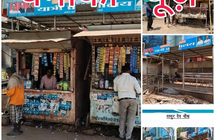 धमाका न्यूज़✍️कवर्धा शहर बेजा कब्ज़ाधारियों से अटा, सड़क किनारे और व्यस्त चौराहों पर बेधड़क धंधा संचालित। यातायात पुलिस ने यात्री प्रतीक्षालय को घेरे दुकानों को हटवाया।